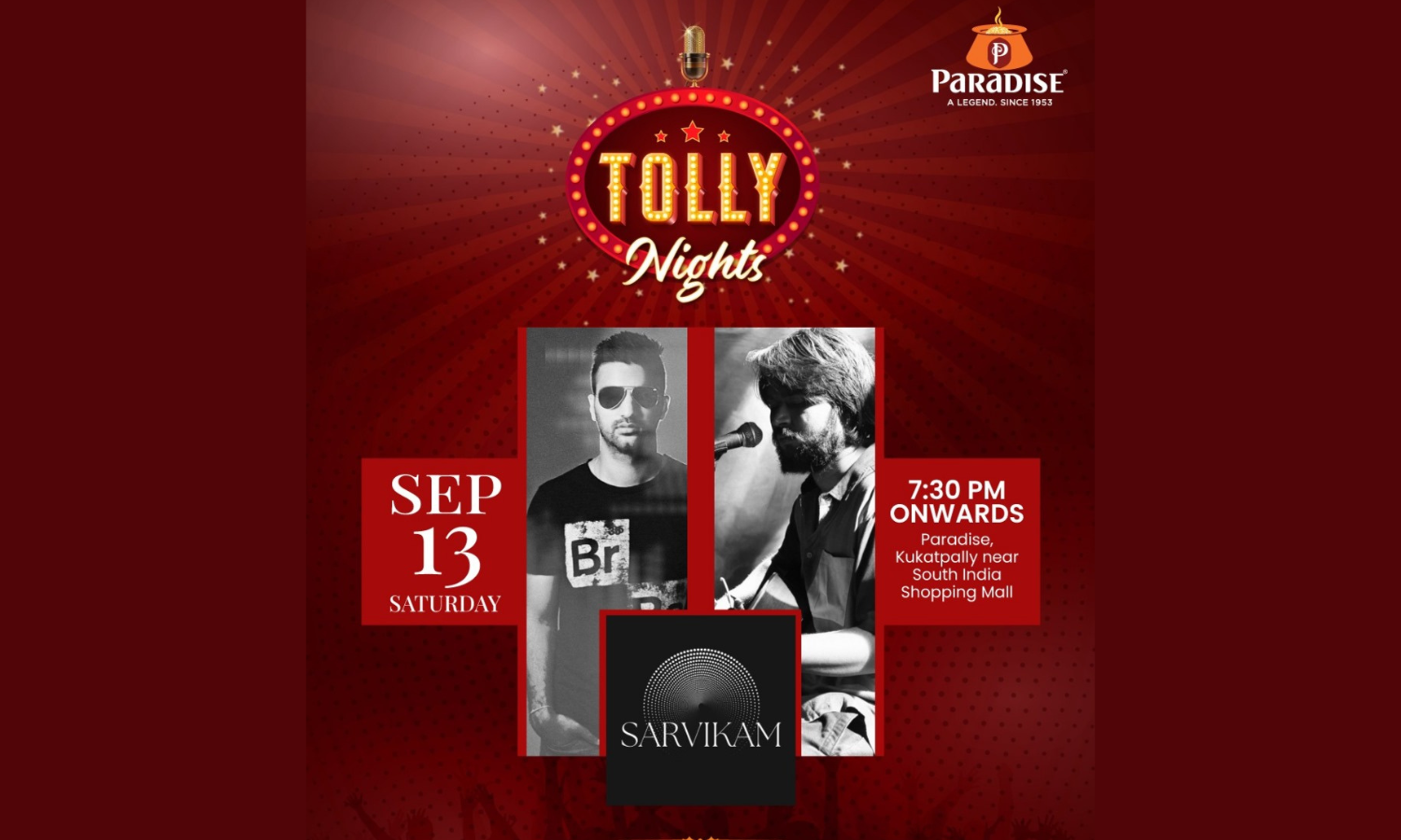 Read morePopular food chain Paradise Biryani is hosting a musical evening ‘Tolly Night’ by Sarvikam – a city band known for recreating the Tollywood magic through their soulful renditions. The live…