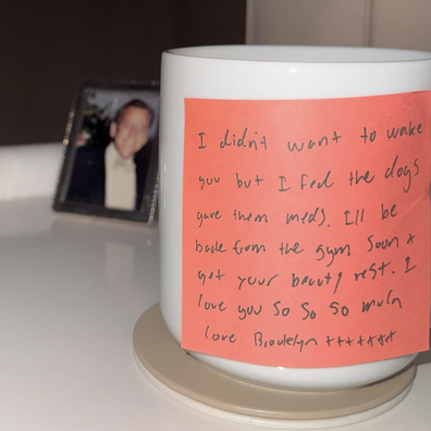 On Wednesday, the model, 31, posted a love note her husband Brooklyn Beckham left her which read: “I’ll be back from the gym soon x get your beauty rest.”