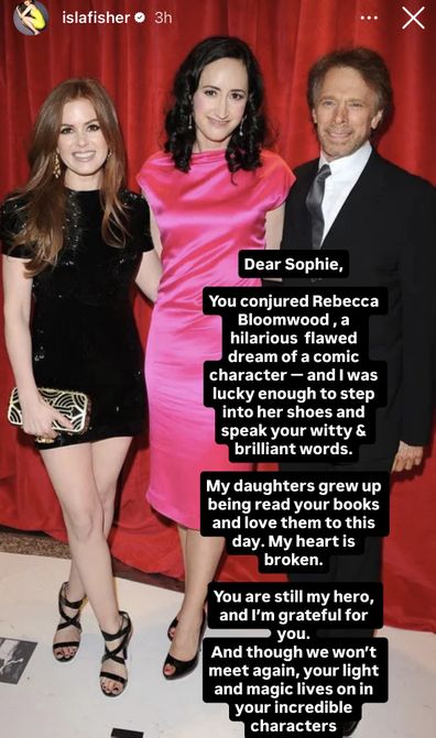 Aussie actress Isla Fisher is leading tributes to Confessions of a Shopaholic author Sophie Kinsella, whose death was announced overnight. She was 55.