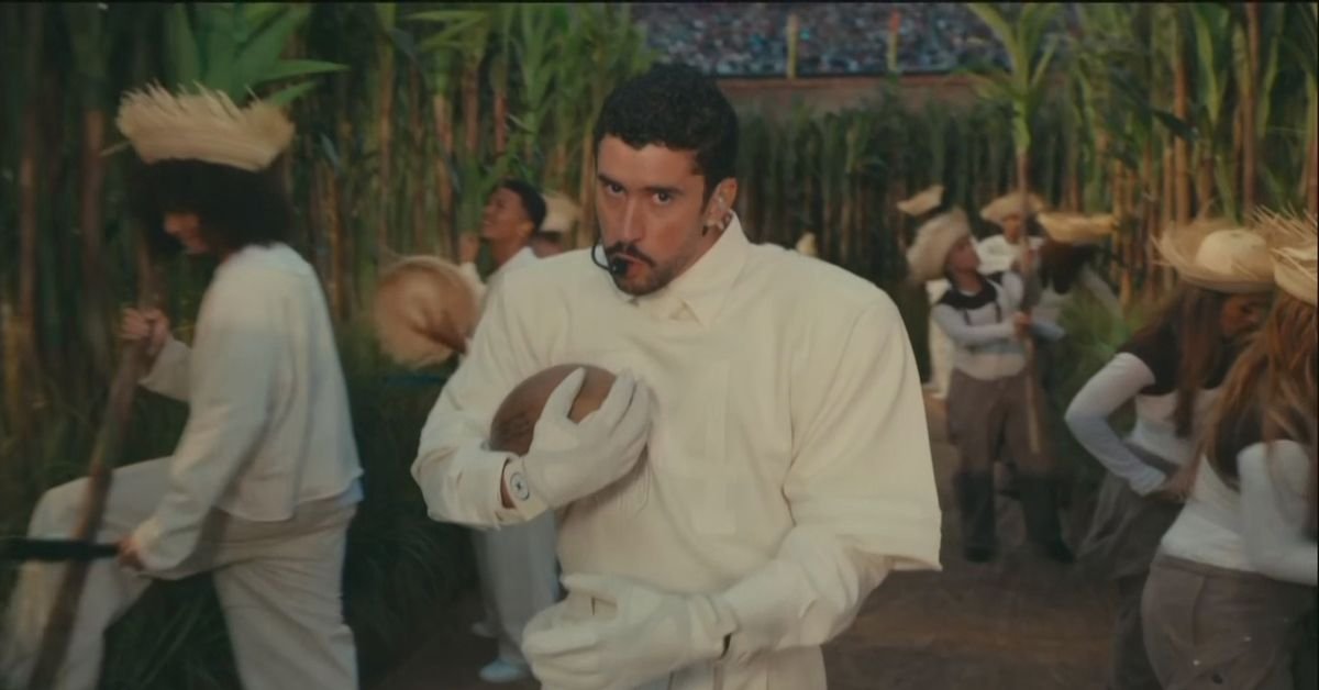 The star, whose real name is Benito Antonio Martínez Ocasio, began singing in a massive cornfield with many characters central to Puerto Rican culture, such as uncles and jewellery store merchants.
