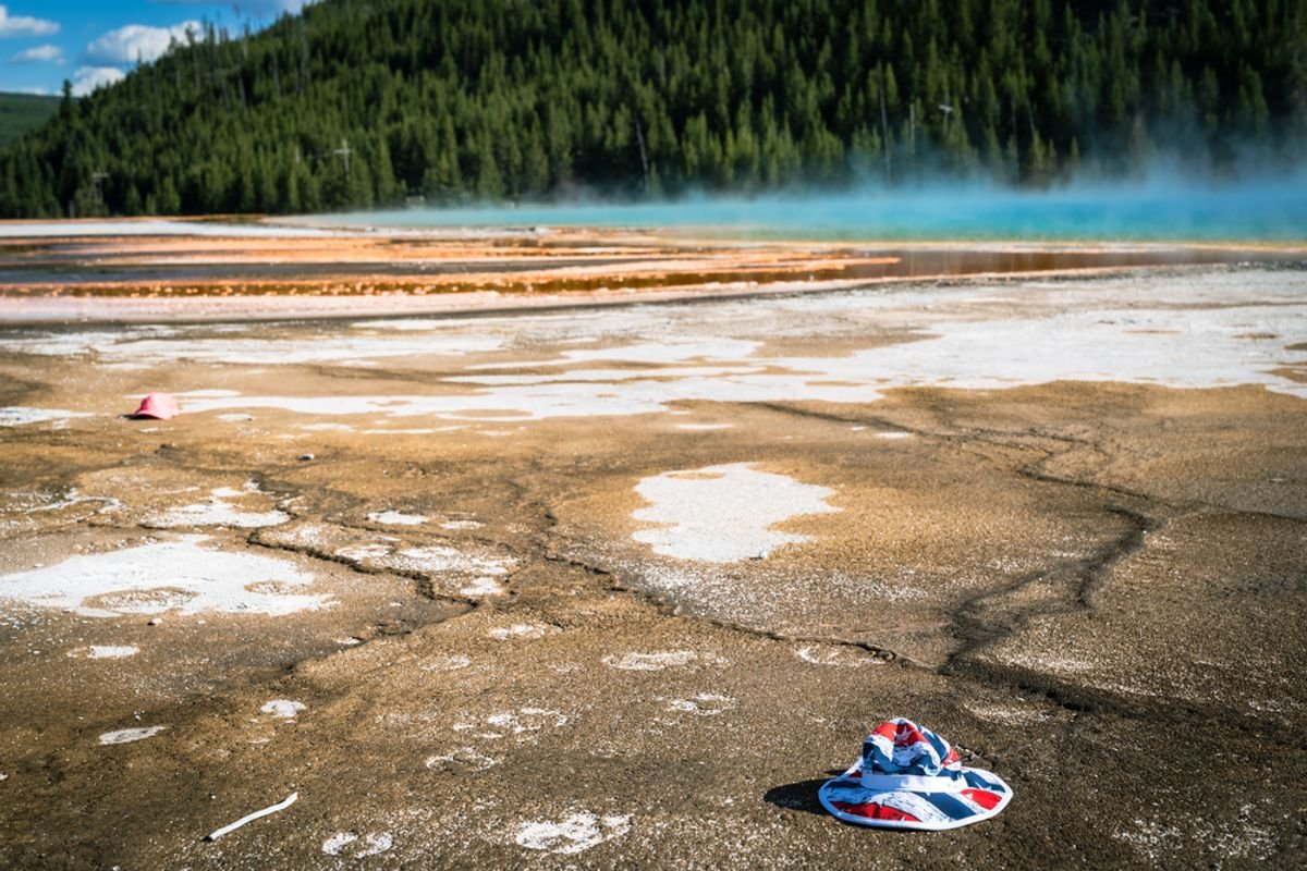 As Yellowstone geologists scout hydrothermal features for any damage, they come across all different kinds of litter; gum wrappers and tissues, for example, have been blown into hot springs by wind over the years. The same goes for hats, whisked off of visitors’ heads as they stroll along boardwalks; in 2025, over 300 hats were recovered from hydrothermal areas, according to the Yellowstone Volcano Observatory.